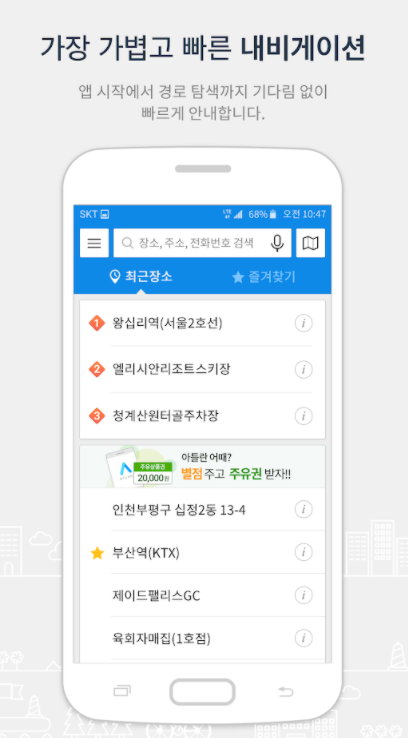 ▶화면도 깔끔하고, 최적이 경로 이용과 빠른 경로도 알려주고, 음악과 연동할 수 있어서 사용하기 편리합니다. 인지도가 높아져서 더 많은 유저가 생겼으면 하네요.