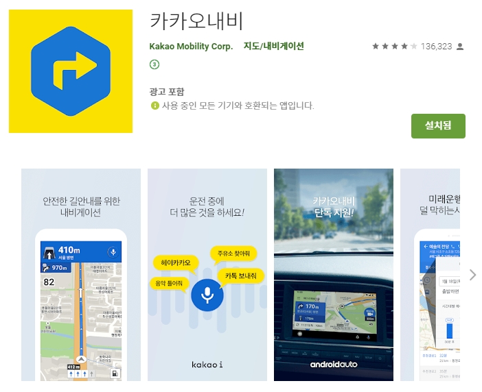 두 번째 소개할 어플은 카카오내비 입니다. 예전에는 김기사 어플로 유명했죠~ 지금음 카카오내비로 이름을 변경했습니다.