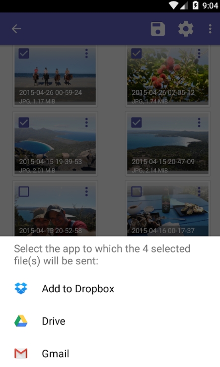 복구된 파일을 Google 드라이브, Dropbox에 직접 업로드하거나 이메일을 통해 보낼 수 있습니다. 응용 프로그램은 또한 장치의 다른 로컬 폴더에 파일을 저장할 수 있습니다.