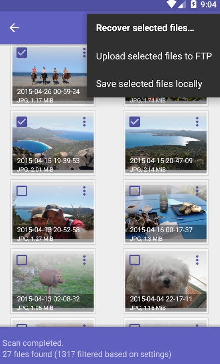 * 기기가 루팅 되지 않은 경우 앱은 캐시 및 미리 보기 이미지를 검색하여 삭제된 사진에 대해 '제한적'검색을 수행합니다.