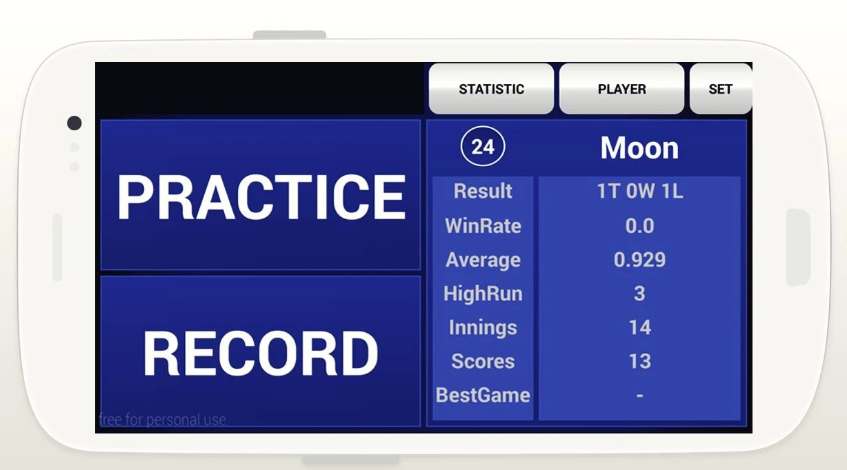 기록경기 : 에버리지, 하이런, 현재 득점 등을 표시, 게임 결과 저장 및 캡처, 공유 가능